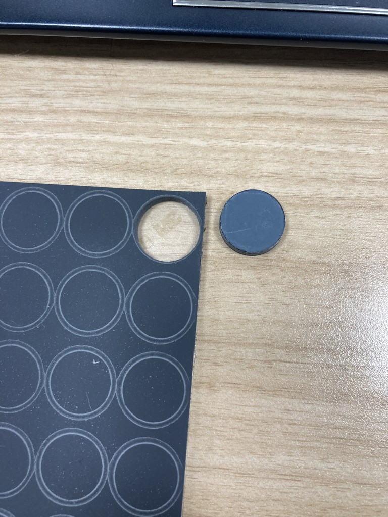 原反であれば、クリア(シリコン)素材も御座いますのでお問合せ下さい。(原反の為、丸形には抜いておりません)