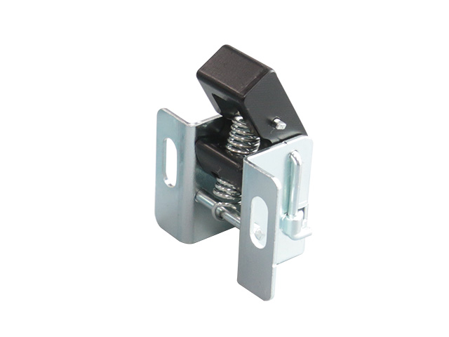 押込むだけで簡単に蓋を固定できるラッチ反転型のストッパーです。ラッチが樹脂製なので筐体側に傷が付きにくいです。