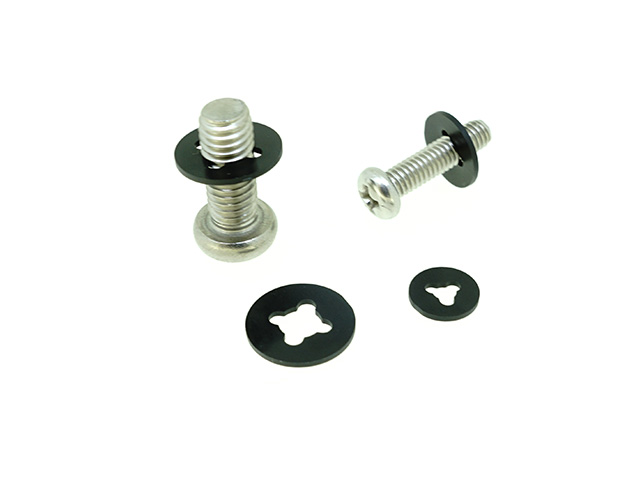 ボルトやファスナー等の先端に差込むだけで簡単に、脱落・抜け止めになるワッシャーです。パネル・シャーシ表面のキズ防止用としてもご使用いただけます。