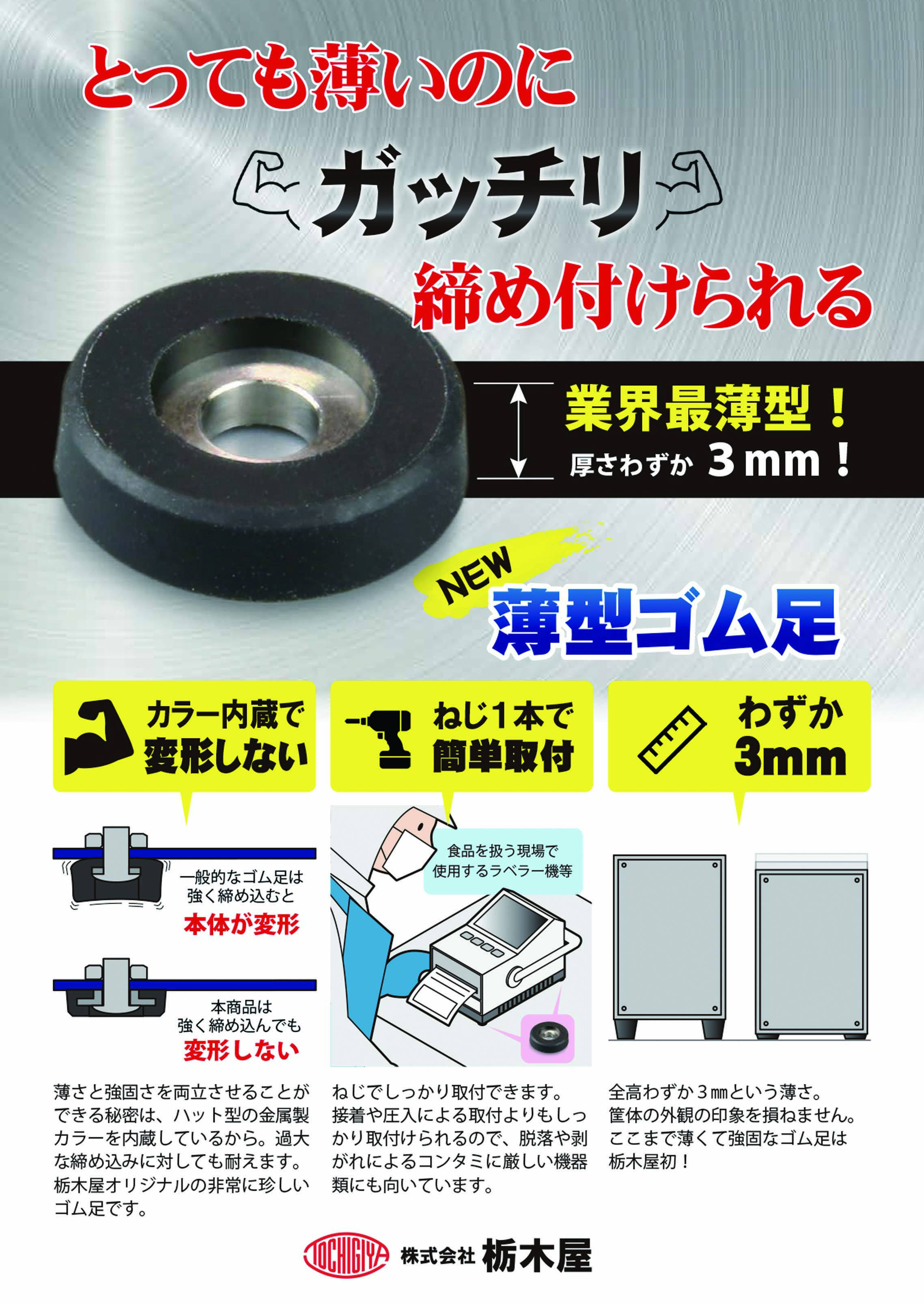 薄型により突出部分が少なく、外観を損なわないゴム足です。